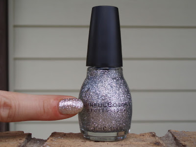 Revlon's nail polish in Galaxy was released with their Just Add Sparkle collection. This line of nail polish was intended to be sold as a duo with a cream color as the base color, but I only picked up the glitter top coat. The accompanying color for Galaxy was Lunar which is a black creme nail polish which I already had from another brand. Galaxy is a clear base with blue and silver specks of glitter and larger holographic pieces. I do like the glitter combination of this nail polish, but it isn't very dense. Galaxy is definitely a polish that you will want to wear as a top coat and definitely not alone.